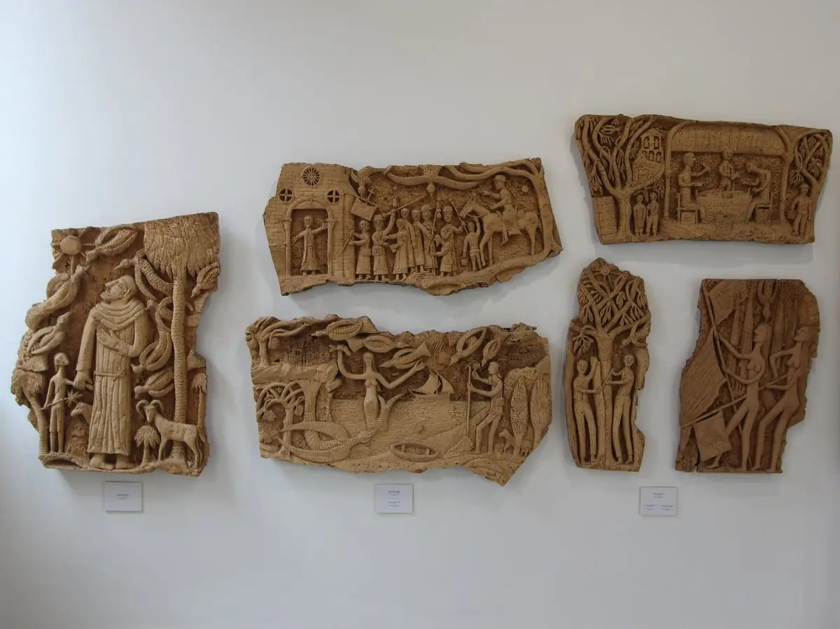 Теперь о том, что же находится «на втором этаже, в левом крыле». Отдельная стена зала отведена под картины, «нарисованные» пробкой. Здесь трудно не восхититься фантазии и упорству мастеров, использующих её в творчестве. Некоторые сюжеты покажутся хорошо знакомыми, так, например, в Палафружеле есть своя «Тайная вечеря», не настолько крупная во всех смыслах, как у Леонардо да Винчи, зато из пробки.