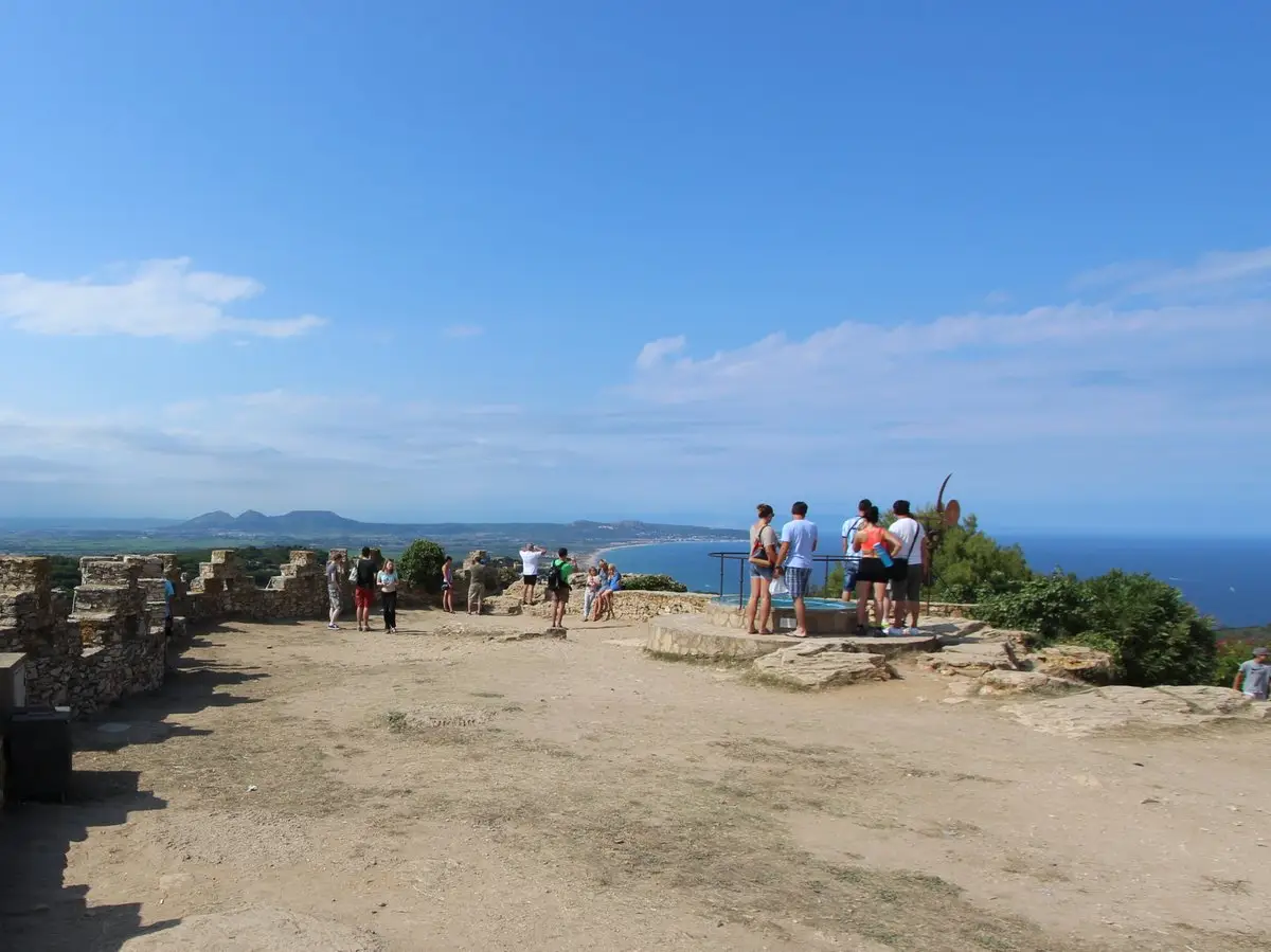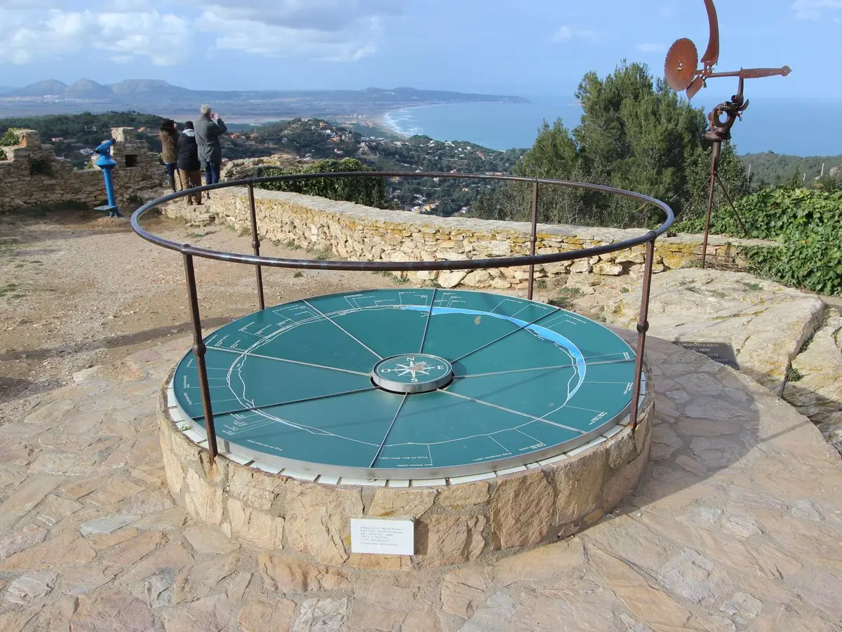 The visitors’ surprise and disappointment — where is the actual castle, pray tell? — quickly gives way to wonder and awe at the views. A circular ceramic map on a cylindrical pedestal introduces visitors to the local geography and helps pinpoint the beautiful elements of the landscape you see below: the islands Illes Medes, the Pyrenean peak El Canigó, the easternmost border of the Iberian peninsula Cap de Creus, the resort towns of the Costa Brava like Palamós and L’Estartit, the coves Sa Riera and Sa Tuna…