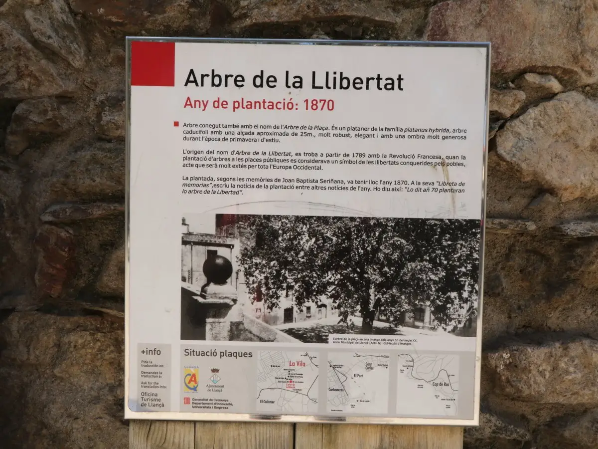 Many peoples throughout the centuries have considered sycamores sacred. After the French Revolution, a sycamore became also a symbol of freedom — the sycamores in Llançà and Arbucies are called Liberty Trees for this reason. At the end of the Spanish Civil War (1936-1939), a group of Frankist soldiers wanted to cut down the Llançà tree to mark the defeat of liberal ideas but were stopped by their chaplain.