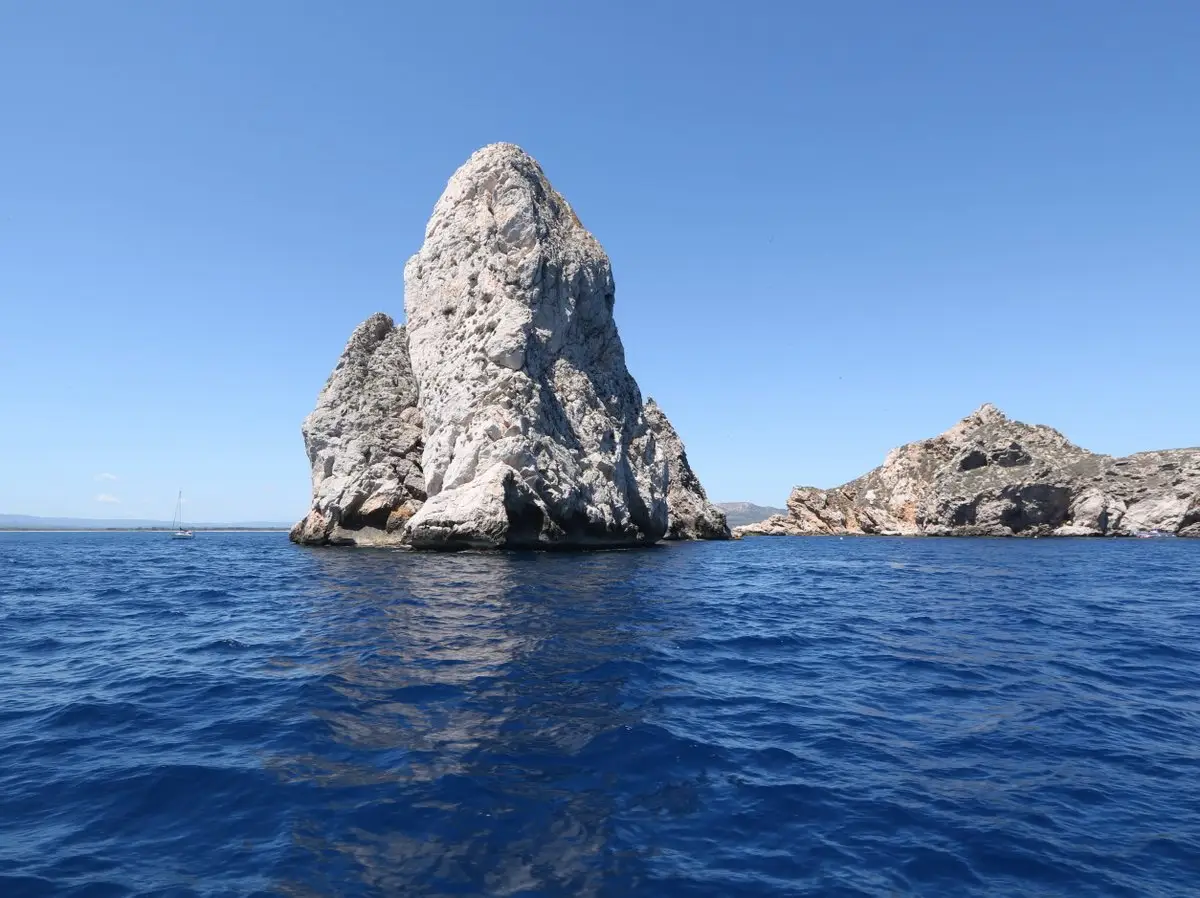 The Medes Islands (Illes Medes) is an archipelago of seven islands with the total area of 21.5 hectares. It is the main attraction of the L’Estartit resort towering over the sea a kilometre away from the beach. Not all islands of the archipelago are “real” islands — five out of seven are rocks sticking out of the water with no flat surfaces to step on or any plants to grow, but they still have names: Carall Bernat, Tascons Grossos, Tascons Petits, Medellot, Ferranelles. The other two are called Meda Gran and Meda Xica.